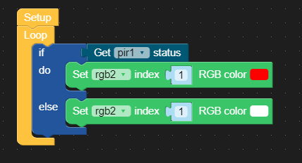 Wurde eine Bewegung erkannt, soll die RGB LED Komponente rot leuchten. Wurde keine