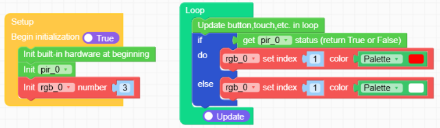 Im Setup Teil wird eine Variable pir_0 für den True oder False Status des