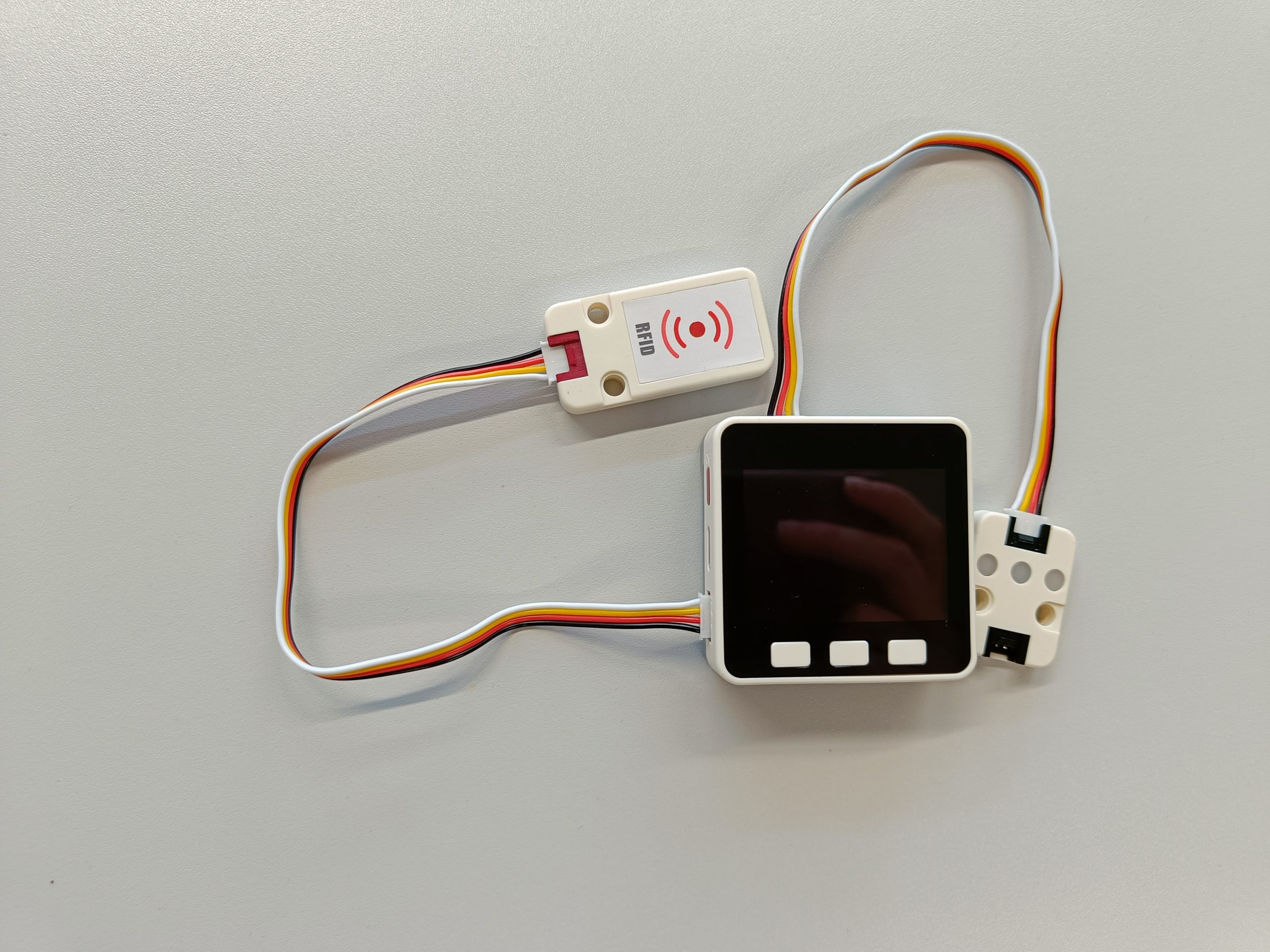 Zunächst muss der RFID-Sensor mit einem Grove Kabel an Port A des M5Stacks angeschlossen werden. Die RGB Komponente wird an Port B gesteckt.