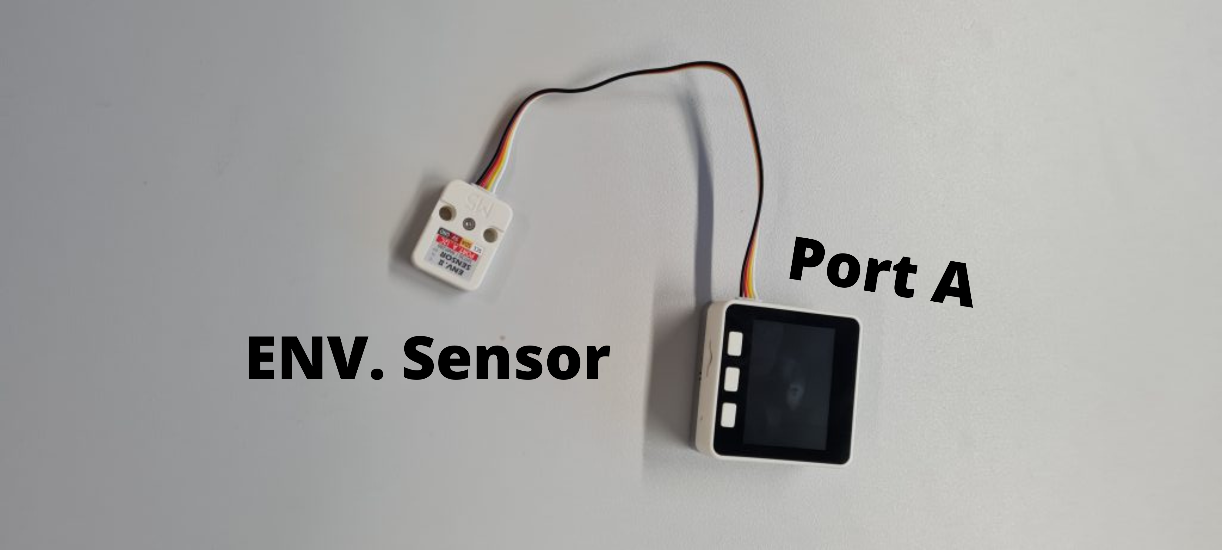 Stecke zuerst den EVN. Sensor am Port A des M5Stacks mittels Grove Kabel an.