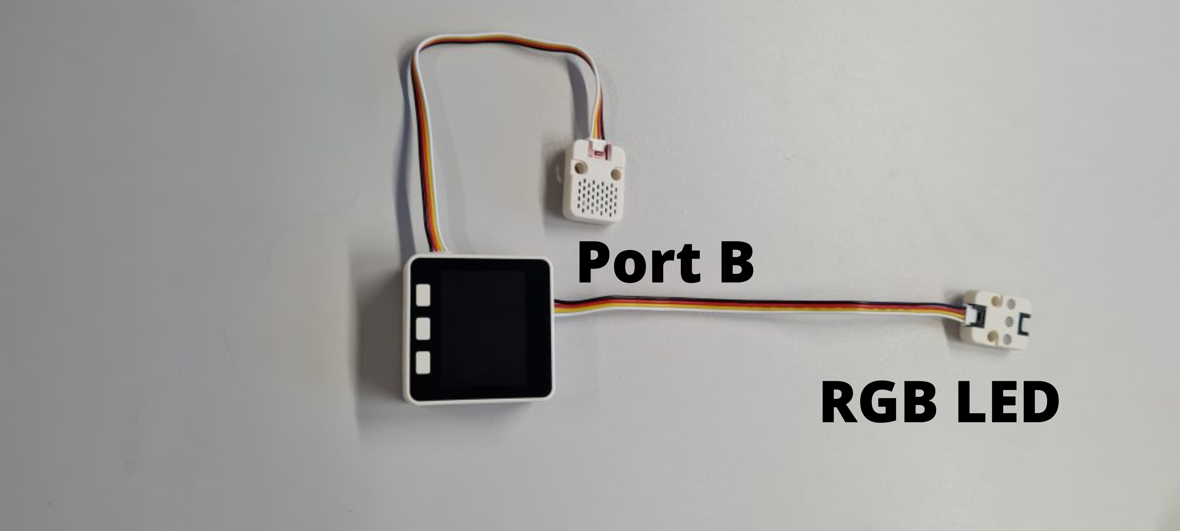 Als nächstes muss nun die RGB LED Komponente an den Port B des M5 Stacks angeschlossen werden.