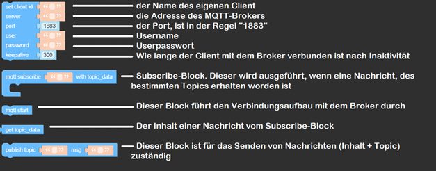 Die jeweiligen Blöcke findet man unter “Advanced -> MQTT”