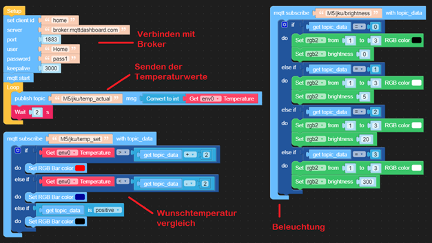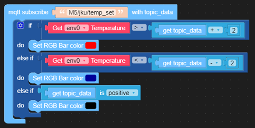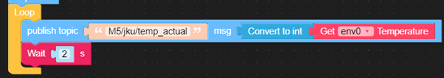Mit dem „Get env0 Temperatue“-Block erhält man die Temperaturwerte. Der „convert to int“ Block konvertiert mir die erhaltenen Werte in schöne Ganzzahlen. Mit dieser Schleife ist das Senden der Sensordaten auch schon bereits getan.
