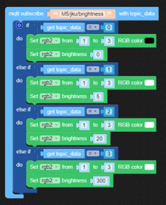 Da unsere Werte im Bereich 0-3 sind, soll zuerst beim Empfangen der Nachricht abgeprüft werden, um welchen von diesen es sich handelt und anhand von dieser reagiert werden und entsprechend die Lichtstärke gesetzt werden.
