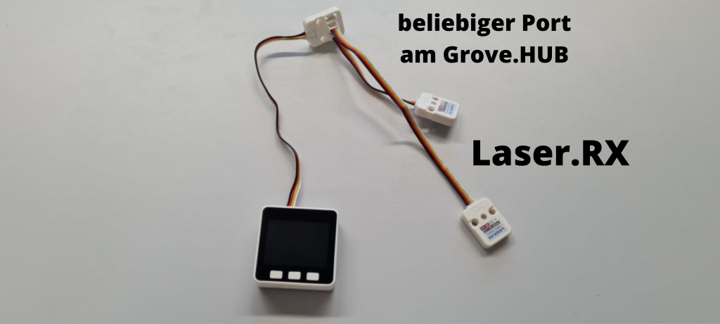 Der M5Stack wird nun über den Grove.HUB mit den beiden Laser Komponenten (Laser.RX und Laser.TX) mittels Grove Kabel erweitert.