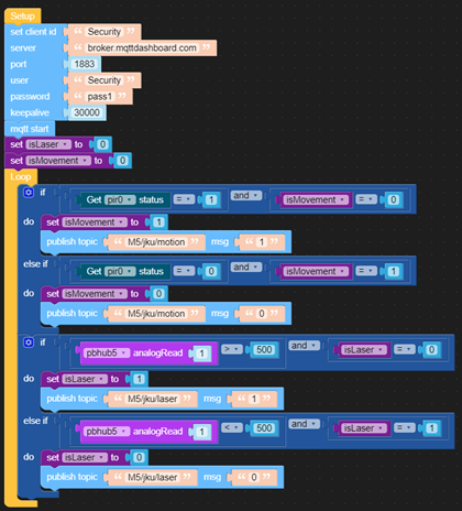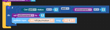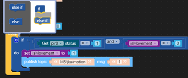 Wird die Bedingung erfüllt, soll die Variable isMovement wieder auf = 0 gesetzt werden (weil keine Bewegung mehr erkannt wird) und diese Information an den Broker senden.