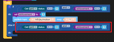 Wird keine Bewegung erkannt, ist jedoch zuvor schon eine erkannt worden ist (isMovement = 1), muss dieser Block ausgeführt werden.