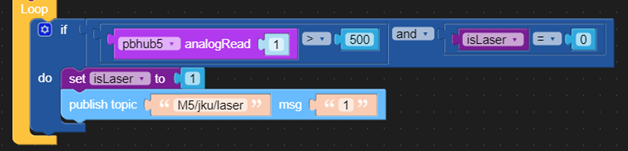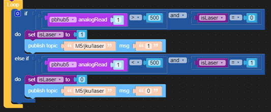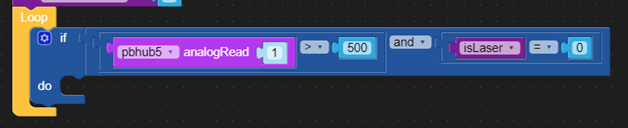 Analog wie beim Bewegungsmelder benötigen wir somit wieder eine „if“-Abfrage wo einerseits der Wert von analogRead abgefragt werden muss, andernfalls auch Variable des Lasers.