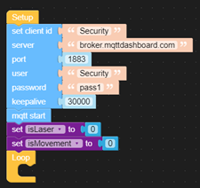 Ich habe für die PIR Variable den Namen „isMovement“ und für die Laser Variable „isLaser“ gegeben und sollen beide mit dem Wert „0“ starten.